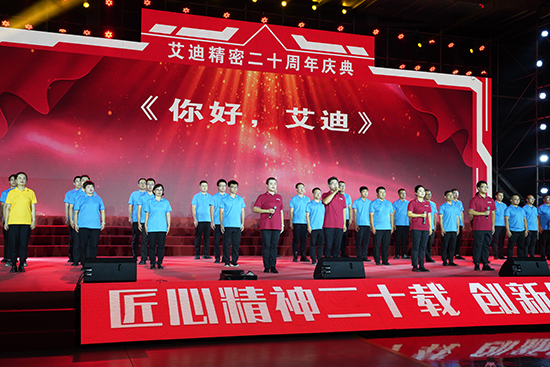 合唱《擼起袖(xiu)子加油干(gan)》、鼓(gu)舞《戰鼓(gu)錚錚》、詩朗誦《匠心(xin)二十載 創新向未來》、走秀《艾迪工人有(you)力(li)量》,以及合唱《少年》,展現(xian)了艾迪人從(cong)創業初期一(yi)路(lu)走來的艱辛歲月,從(cong)青絲到白發,從(cong)懵懂到堅(jian)定,他們無(wu)悔無(wu)畏、信(xin)心(xin)滿懷。
